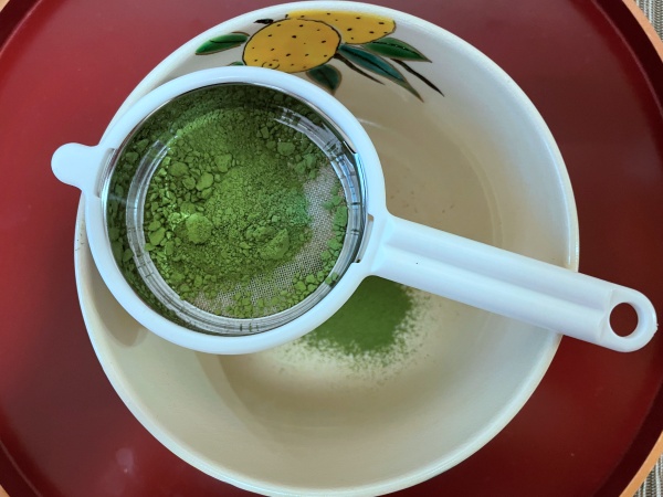 抹茶は買ってきたものをそのまま使うのでなく、必ず茶こしなどでふるってから使います